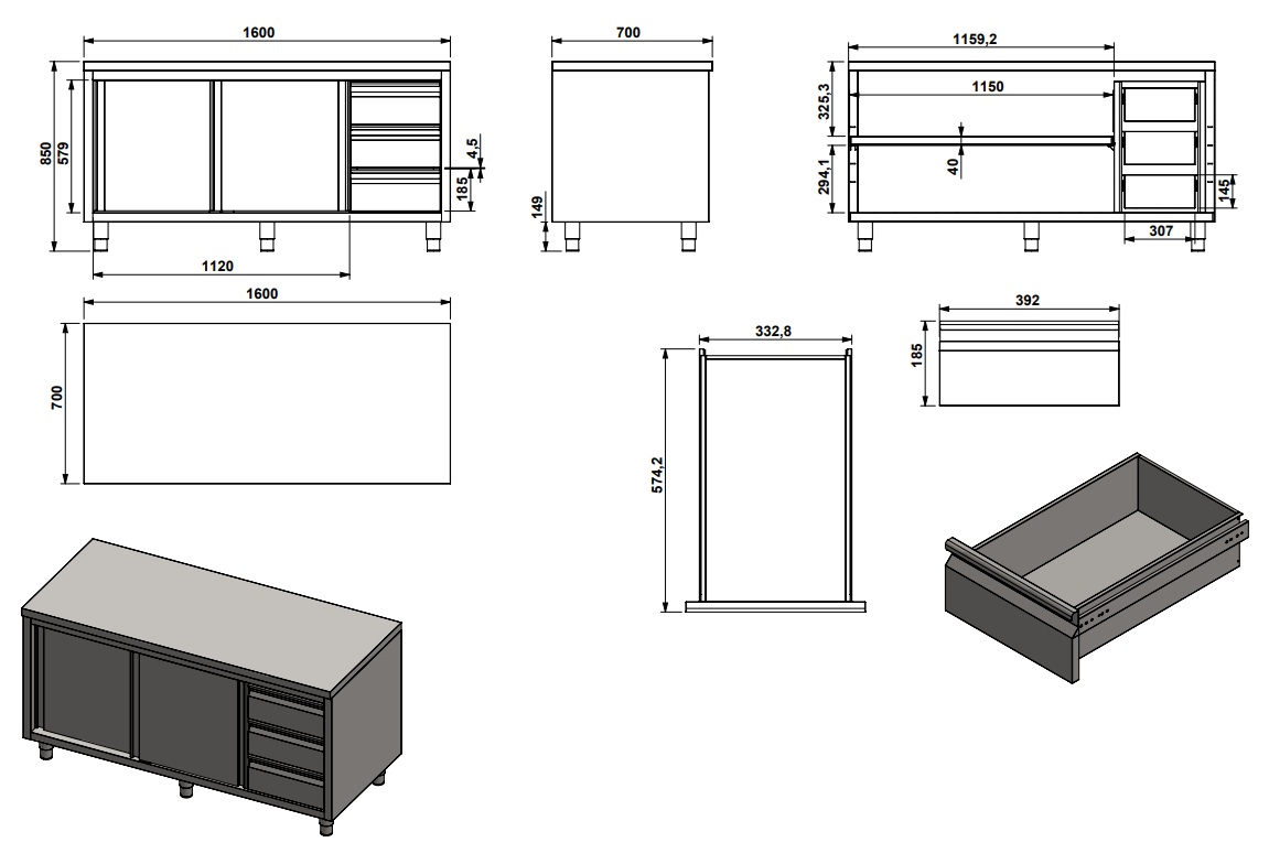 700 darbastalis, stumdomos durys, stalčiai dešinėje, 1600