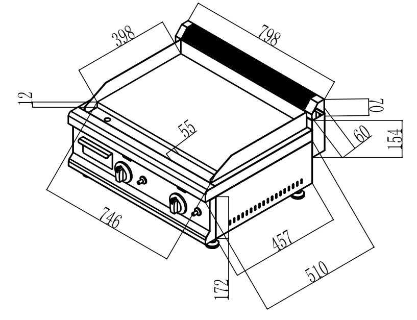Ši profesionali dujinė kepimo plokštuma ant propano yra nepakeičiamas prietaisas bet kurioje profesionalioje virtuvėje ar lauko virtuvėje. Dėl lygaus, chromuoto kepimo paviršiaus šiluma pasiskirsto tolygiai, todėl patiekalai iškepa idealiai. Nuo sultingų kepsnių ir minkštos žuvies iki traškių daržovių ir subtilių kiaušinių – ši kepimo plokštuma gali paruošti viską. Chromuotas paviršius užtikrina, kad maistas nepridegtų ir būtų lengvai valomas. Matmenys: 800x575x365mm (PxGxA) – suvartojimas 6 kW – svoris 40 kg.