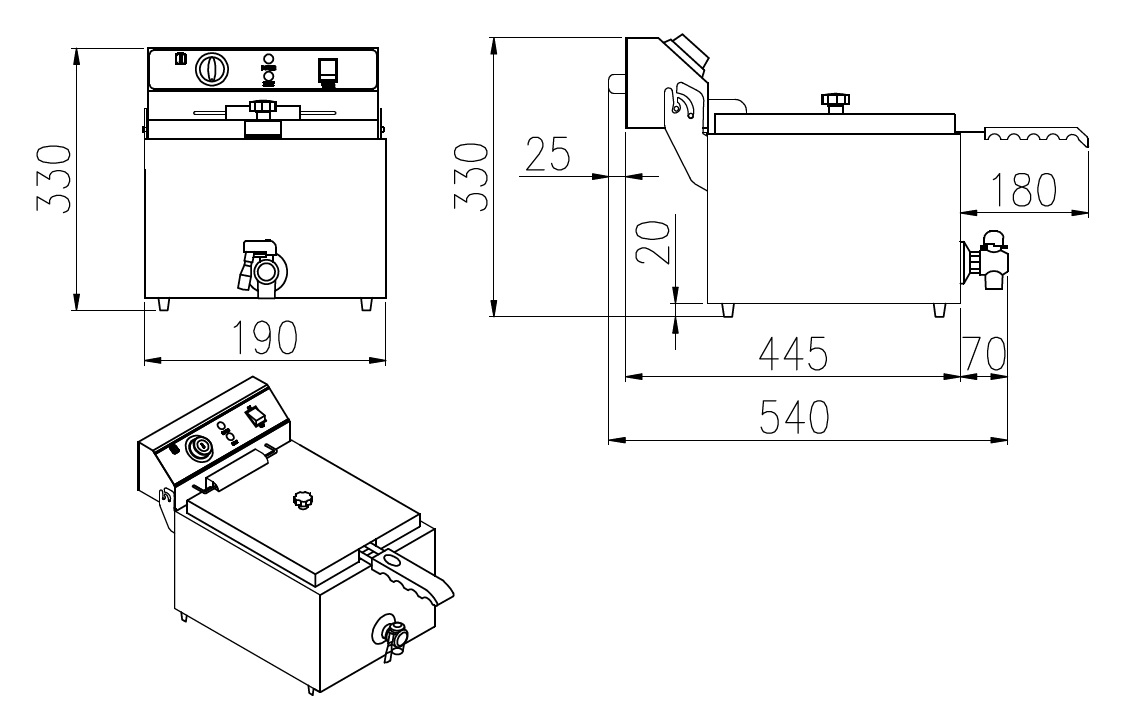 Ši patogi „Combisteel“ stalviršinė gruzdintuvė puikiai tinka naudoti įvairiose aplinkose. Nesvarbu, ar dirbate restorano virtuvėje, vadovaujate bufetui, ar tiekiate maistą renginyje, ši gruzdintuvė suteiks jums reikalingą talpą ir patogumą. Dėl kompaktiško dizaino ji tinka bet kokiai virtuvės įrangai ir yra lengvai perkeliama bei laikoma. Gruzdintuvė pagaminta iš tvirto nerūdijančio plieno ir užtikrina reikiamą galią greitai ir tobulai traškiai iškepti patiekalus. Matmenys: 190x540x330 mm (PxGxA) – galia 2 kW – talpa 4 L – svoris 5,3 kg.