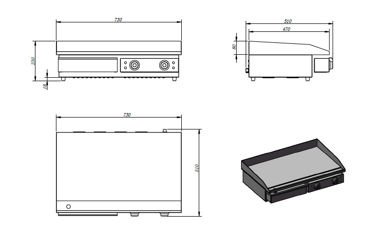 Ši kompaktiška stalviršio kepimo plokštuma puikiai tinka tiek namų naudojimui, tiek mažesnėms profesionalios virtuvėms. Su dviem reguliuojamais termostatais galite nepriklausomai valdyti kiekvieną zoną, užtikrindami maksimalų lankstumą ir efektyvumą. Tolygus šilumos paskirstymas užtikrina puikius kepimo rezultatus visiems jūsų patiekalams. Tvirtas nerūdijančio plieno korpusas ir išimamas riebalų padėklas leidžia valyti lengvai ir greitai. Matmenys: 730x510x230 mm (IxGxH) – energijos suvartojimas 3,5 kW – svoris 28,5 kg.