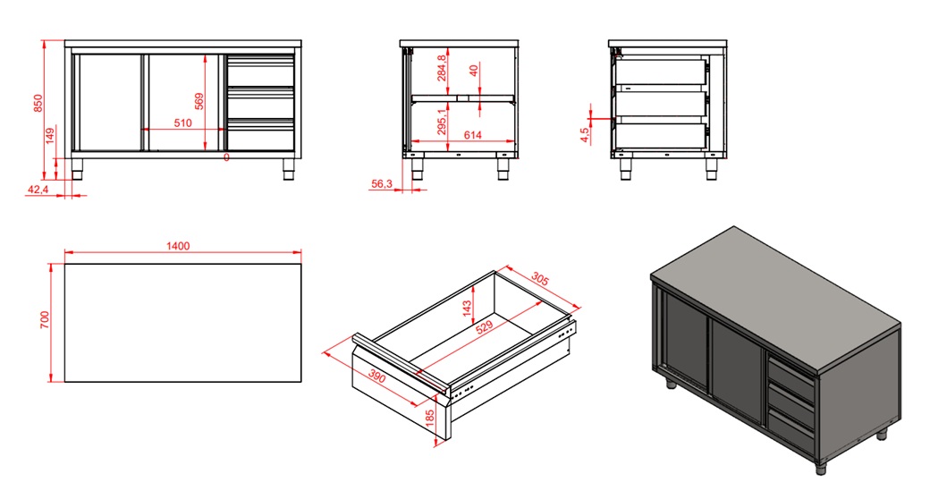 700 worktable sliding doors drawers right 1400