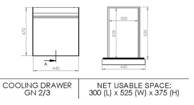 - Refrigerated drawer layout: 3x GN 2/3 – perfect for chilled ingredients