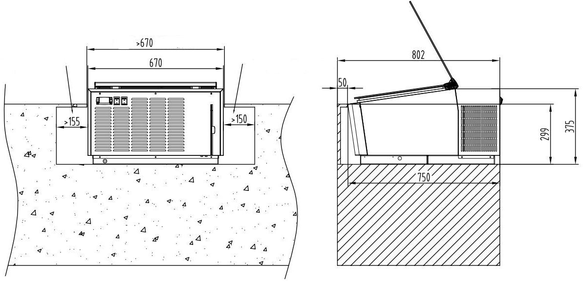 Juoda stalviršio modelio ledų vitrina, atidaroma iš aptarnavimo pusės