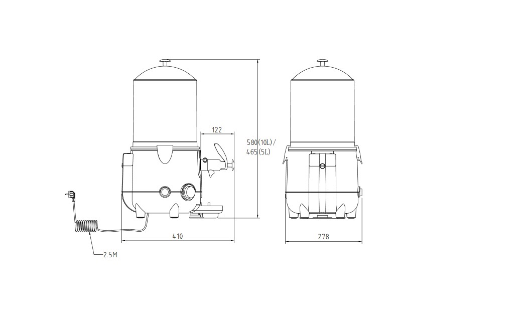 - Didelė talpa: 10 litrų talpa keliems puodeliams patiekti.