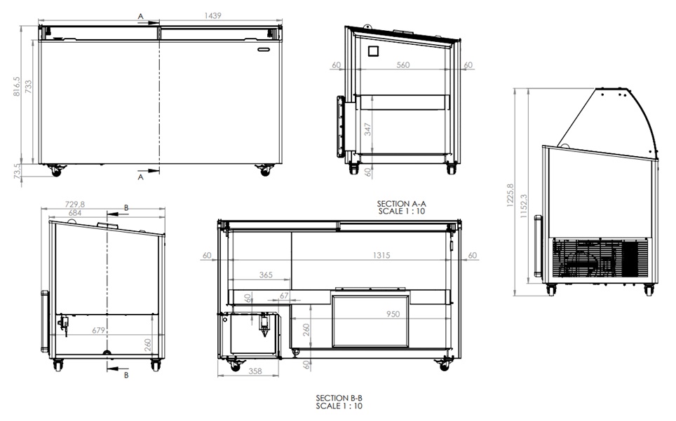 Ši stilinga juoda ledų vitrina yra puikus pasirinkimas ledų salonuose, restoranuose ar renginių metu pristatyti ir laikyti porcijinius ledus. Statinė aušinimo sistema užtikrina pastovią temperatūrą, o rankinis atitirpinimas palengvina priežiūrą. Vitrina talpina 10 padėklų po 5 litrus, o apatinis aušinimas suteikia papildomos vietos saugojimui. Modelis yra mobilus, todėl jį galite lanksčiai perkelti. Jame taip pat yra stumdomi langai, kurie dar labiau pagerina prieinamumą ir naudojimo patogumą. Matmenys: 1439x727x1229 mm (PxGxA) – Temperatūra: -24/-14ºC – Energijos suvartojimas: 0,26 kW – Svoris: 101 kg.