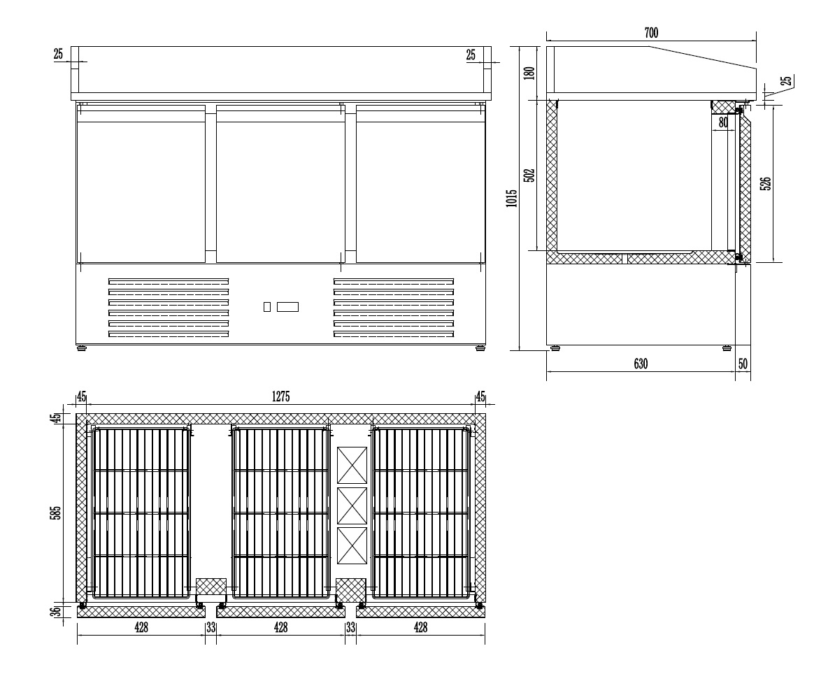 Холодильный стол для пиццы трехдверный Energy Line с испарителем