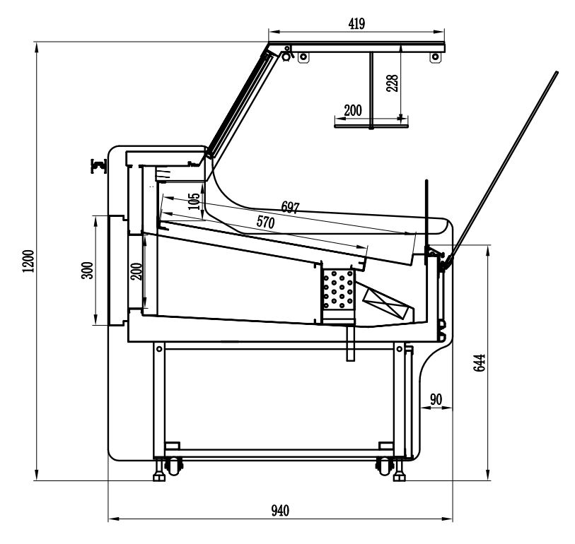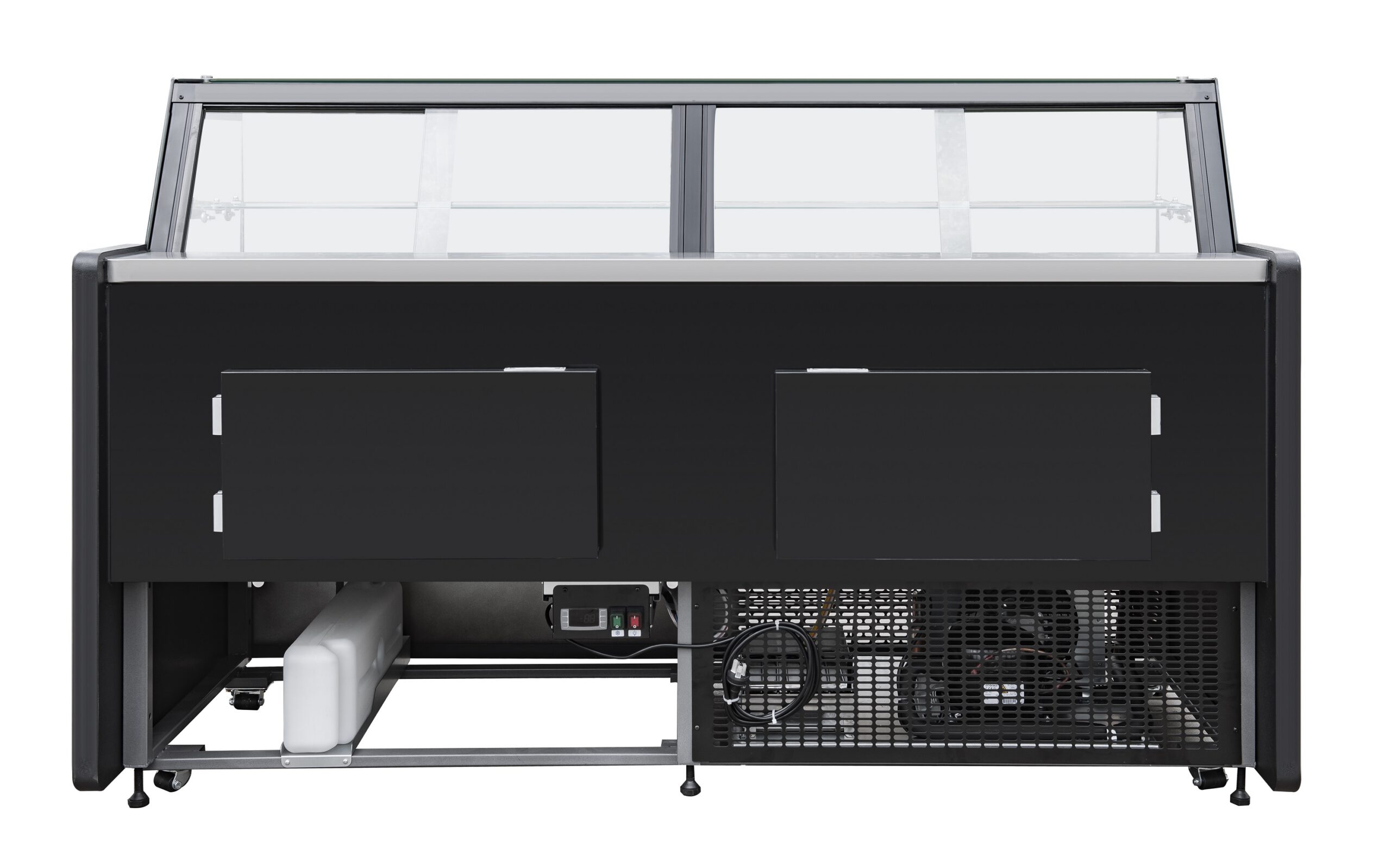 Ši juoda, modernaus dizaino šaldymo vitrina puikiai tinka jūsų produktams eksponuoti ir vėsinti. Su ryškiu LED apšvietimu ji gražiai išryškina jūsų produktus, o priverstinio vėsinimo sistema užtikrina pastovią, tolygią temperatūrą. Ši vitrina sujungia elegantišką dizainą su puikiu vėsinimo našumu. Matmenys: 1955x940x1200 mm (IxGxH) – energijos sąnaudos 0,33 kW – talpa 460 L – temperatūra 0/+5ºC – svoris 190 kg.