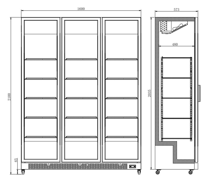 - Trigubas stiklas su stiklo šildymu: apsaugo nuo kondensacijos ir užtikrina puikų turinio matomumą.