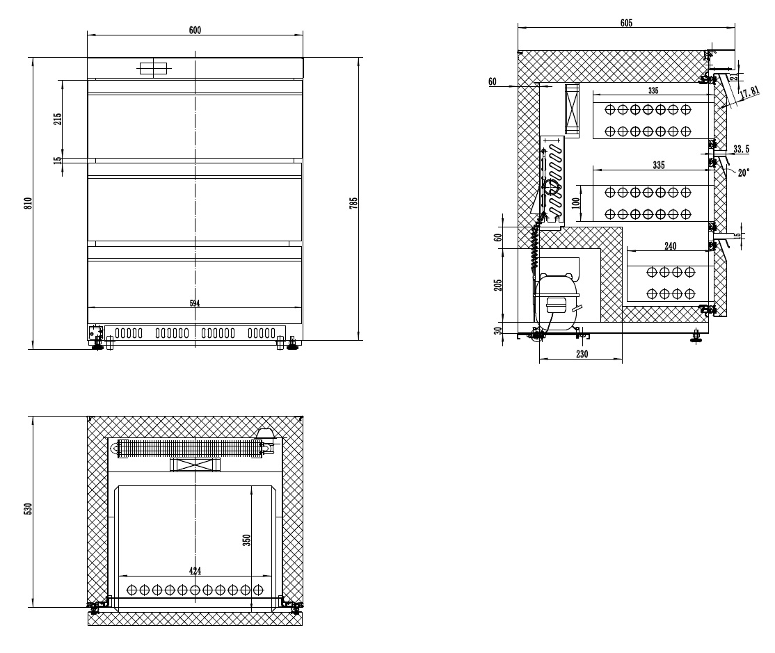 Šaldytuvas nerūdijančio plieno 3 stalčiai