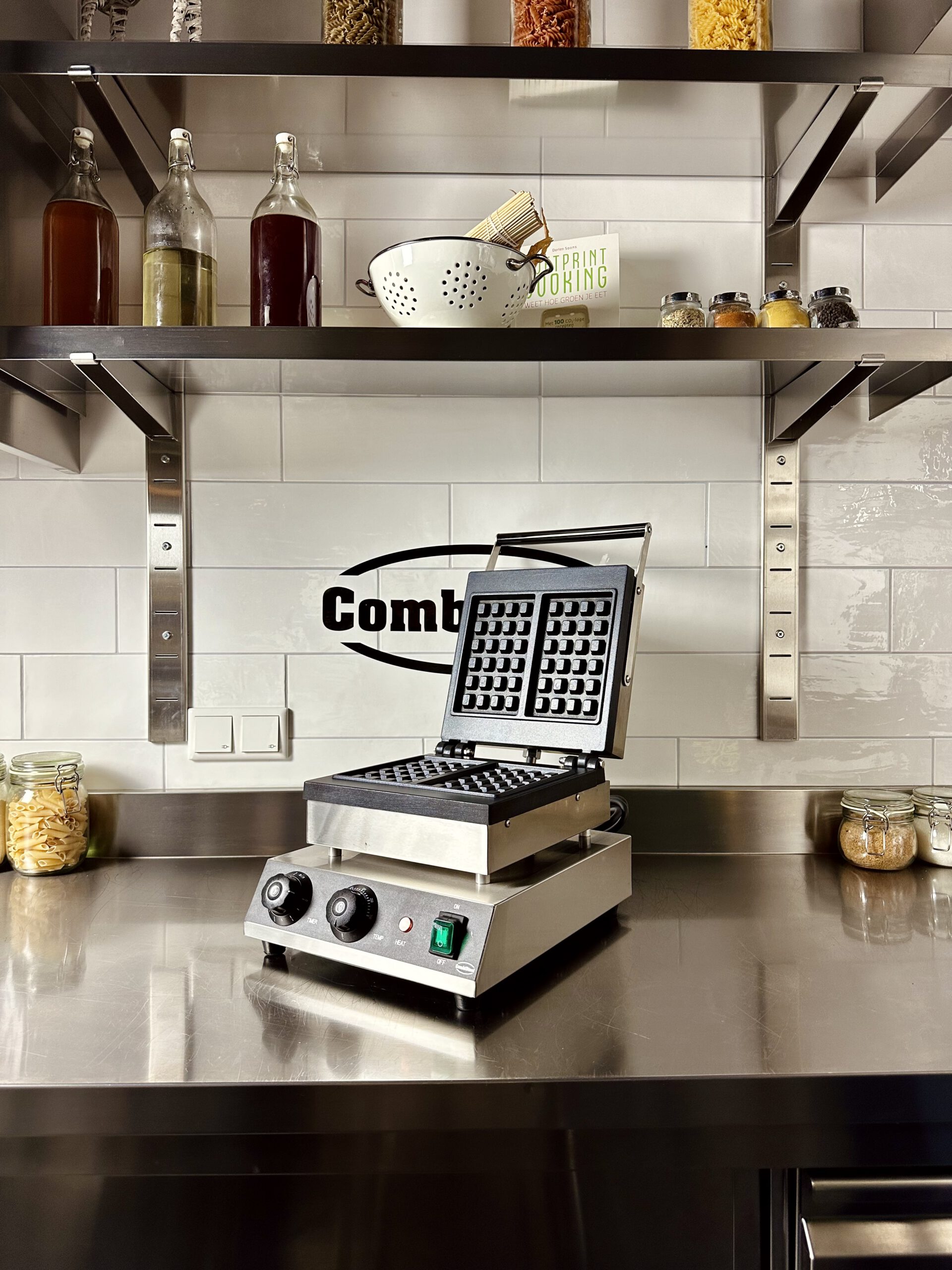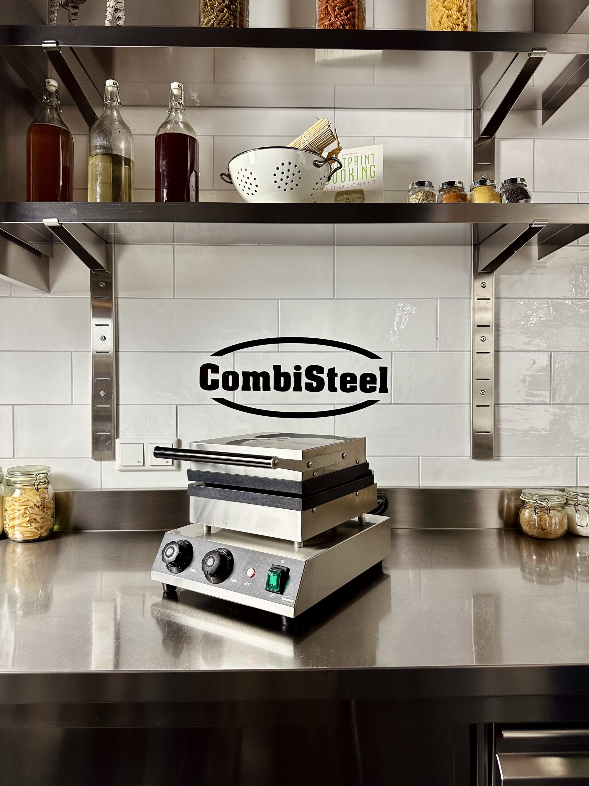 „Combisteel“ vaflių keptuvas puikiai tinka bet kokiai progai, nesvarbu, ar vadovaujate judriai pusryčių kavinei, aptarnaujate renginį, ar tiesiog mėgaujatės šviežiais, traškiais vafliais namuose. Dėl tvirtos konstrukcijos ir patogaus dizaino galite greitai paruošti skanius vaflius. Be to, jis išsiskiria elegantiška, modernia išvaizda. Matmenys: 300x450x250 mm (ilgis x plotis x aukštis) – galia 2 kW – svoris 10 kg.